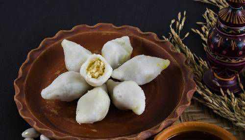 Steamed or fried rice flour dumplings filled with spiced lentils and vegetables, offering a delicious and comforting snack.