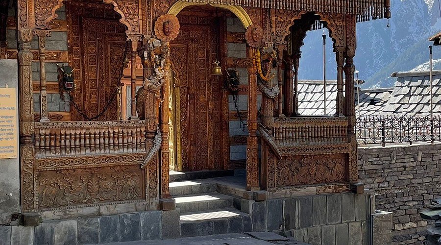 A historic stone-and-wood temple dedicated to Lord Vishnu and the serpent goddess, featuring intricate Kinnauri architecture.