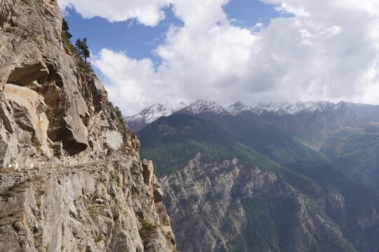 This dramatic cliffside viewpoint offers breathtaking, unobstructed panoramic views of the majestic Kinner Kailash range, especially stunning during sunrise when the peaks glow golden. Despite its morbid name, it is a serene spot for photography and meditation, with the deep Sutlej River gorge visible far below.