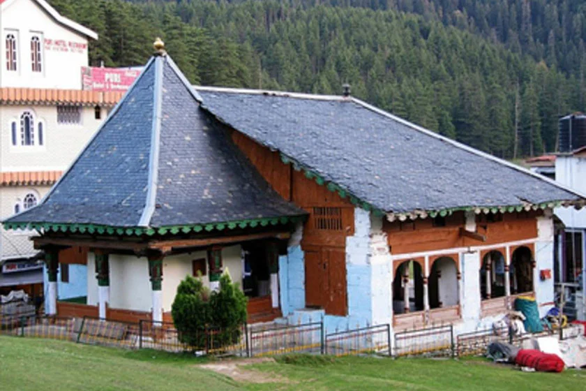An ancient temple dedicated to the serpent god Khajjinag, featuring unique wooden architecture and idols.