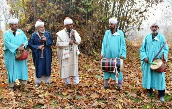 Kashmir is known for its graceful classical and folk dance traditions, with forms like Hafiza Dance and Bhand Pather reflecting the region’s rich cultural tapestry. The elegant Hafiza Dance, inspired by Persian court traditions, features slow, expressive movements and flowing costumes. Folk dances like Dumhal, performed by the Wattal tribe with colorful robes and rhythmic drumming, and Rouf, a gentle women’s dance during festivals, celebrate Kashmir’s vibrant heritage.