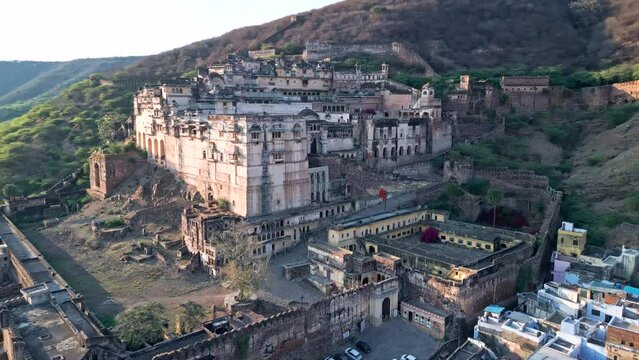 Perched dramatically on a steep hill, Taragarh Fort, or the “Star Fort,” serves as a formidable sentinel overlooking the city of Bundi. Constructed in 1354, it is renowned for its massive battlements, intricate tunnels, and the colossal Bhim Burj, a massive cannon platform that once housed a legendary cannon.