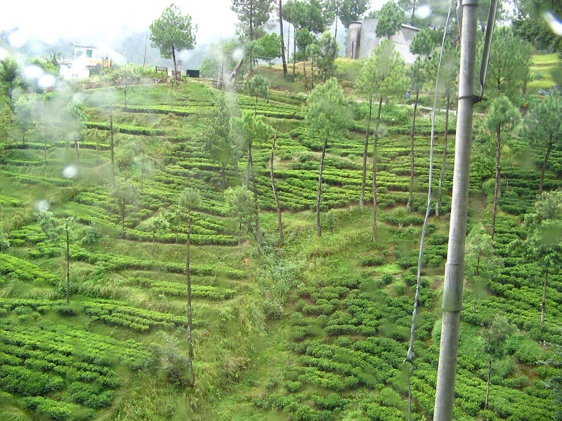 A sprawling tea plantation spread across gentle slopes, offering guided tours and fresh Kumaoni tea tastings amidst scenic surroundings.